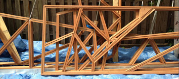 The client has a sensitivity to insects, so special screen was necessary to fill the mahogany cells. The structure supports a glass canopy which is made from a patterned, laminated-tempered glass, allowing light to come through, while still providing privacy due to its water-like pattern. The resulting space provides a sheltered outdoor experience, with space for yoga, dining, reading, and outdoor sleeping