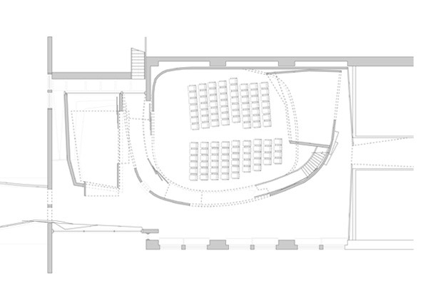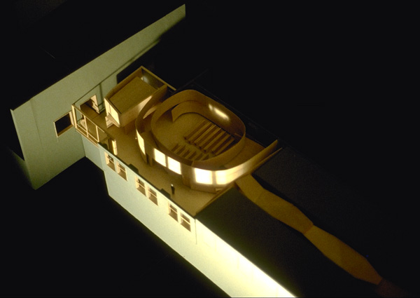 The existing museum is a series of tightly controlled, insular corridors.The renovation and extension proposes to de-laminate the construction layers, which inscribe daily passage through the building. As an alternative to the figuring of spaces using walls, the void of the theater forms the landscape of the renovation. A doubled layering of metal stud and cork walls, conceived as a skin filled with constellations of program, weaves the spaces together and particularizes points of porosity. Plan and section collapse into a series of cohesive and protected spaces, embracing two educational areas and the theater. Moveable and fixed walls unspool from the performance space to define ancillary areas of the learning spaces, reaching out beyond the education wing.